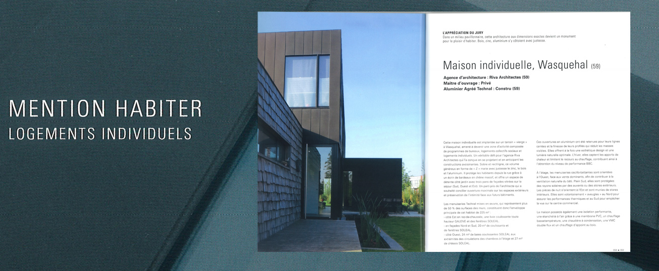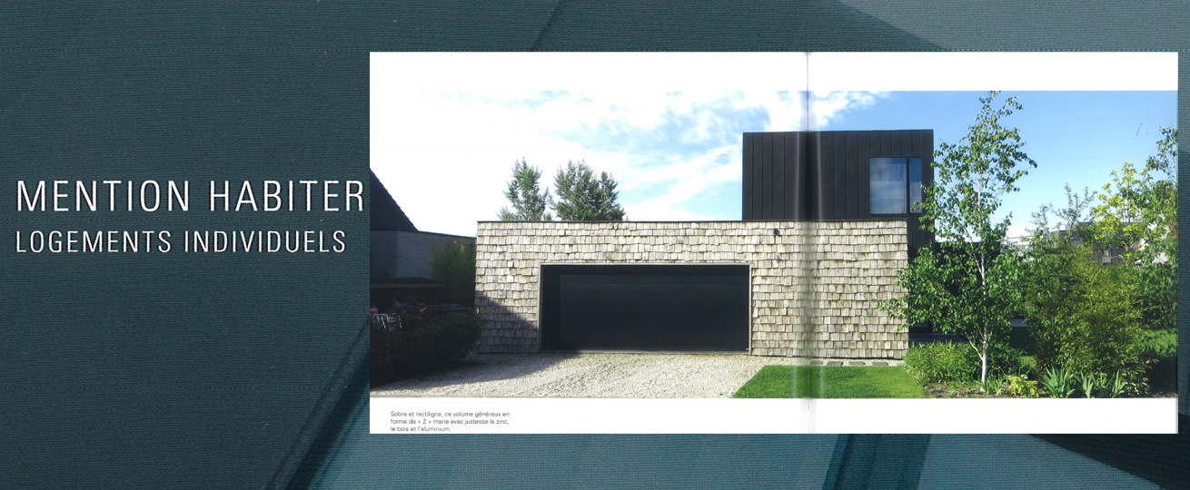 « Dans un milieu pavillonnaire, cette architecture au dimensions exactes devient un monument pour le plaisir d’habiter. Bois, Zinc, aluminium s’y côtoient avec justesse. »
