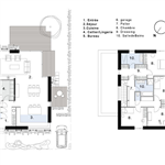 Un volume bas, regroupant garage et pièce technique précédé d’un car-port s’implante en limite nord, le long de la voirie. Le volume principal s’implante en retrait de 3m sur une profondeur de 12m et espacé de 3m de la limite Sud.