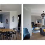 A l’étage, 3 chambre d’enfants et 1 appartement parental (regroupant salle de bain dressing et chambre) s’organise autour d’un palier-bibliothèque. Une grande baie fixe, implantée dans la montée d’escalier illumine aussi bien le palier de l’étage que l’entrée au rez de chaussée.