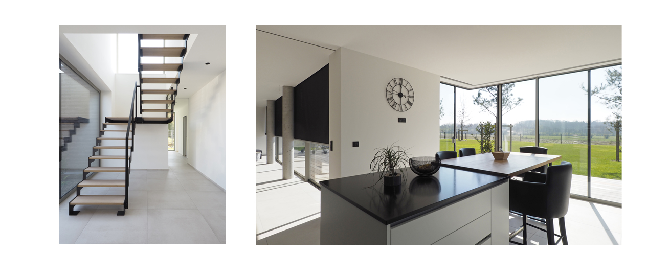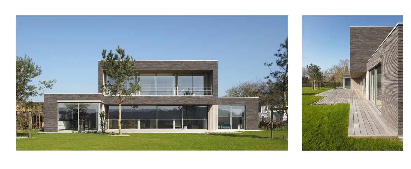 - structure béton, briques collées, cèdre rouge, chauffage par pmope à chaleur, menuiseries aluminium