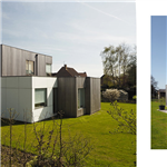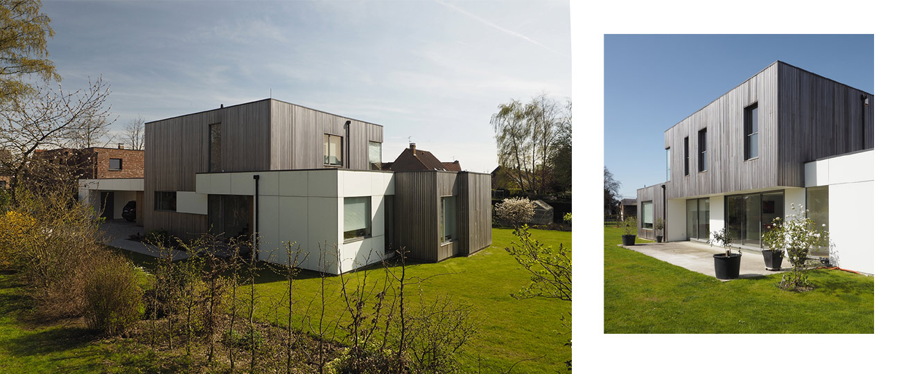 - Structure bois, bardage red cedar ajouré et panneaux fibro-ciment, menuiseries extérieures aluminium, chauffage gaz