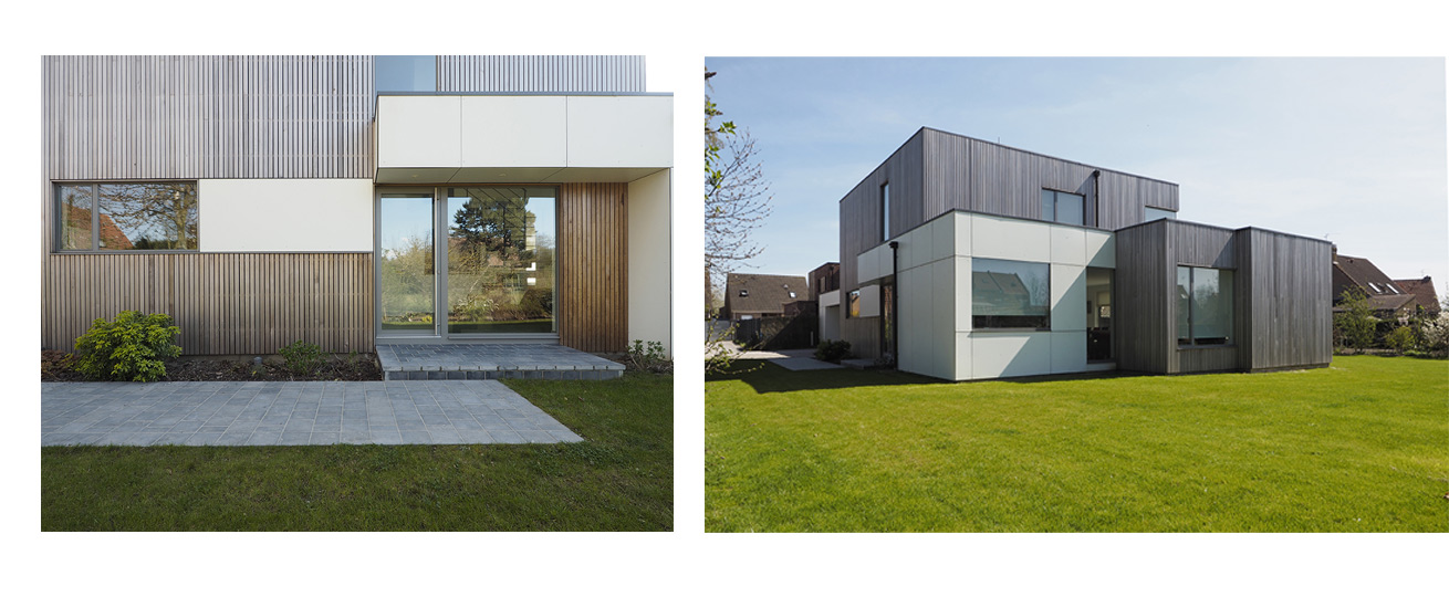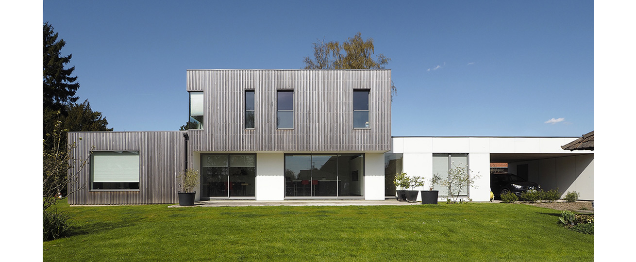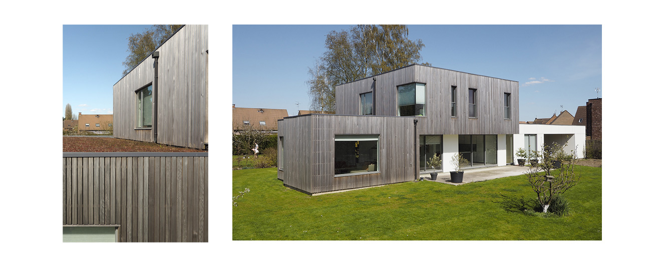 - un bardage en bois d'essence durable, le red Cedar, de ton gris argenté.
