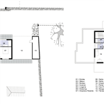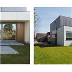 Cette maison cubique s'inscrit dans le quart Nord-est du terrain, proche de l'allée d'accès, afin de limiter les emprises des voiries, de favoriser la surface des espaces verts et l'orientation des façades au Sud-ouest