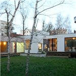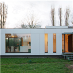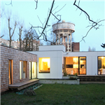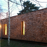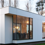 - Structure bois, bardage en tuileaux de red cedar et panneaux fibro-ciment, menuiseries extérieures aluminium, chauffage gaz