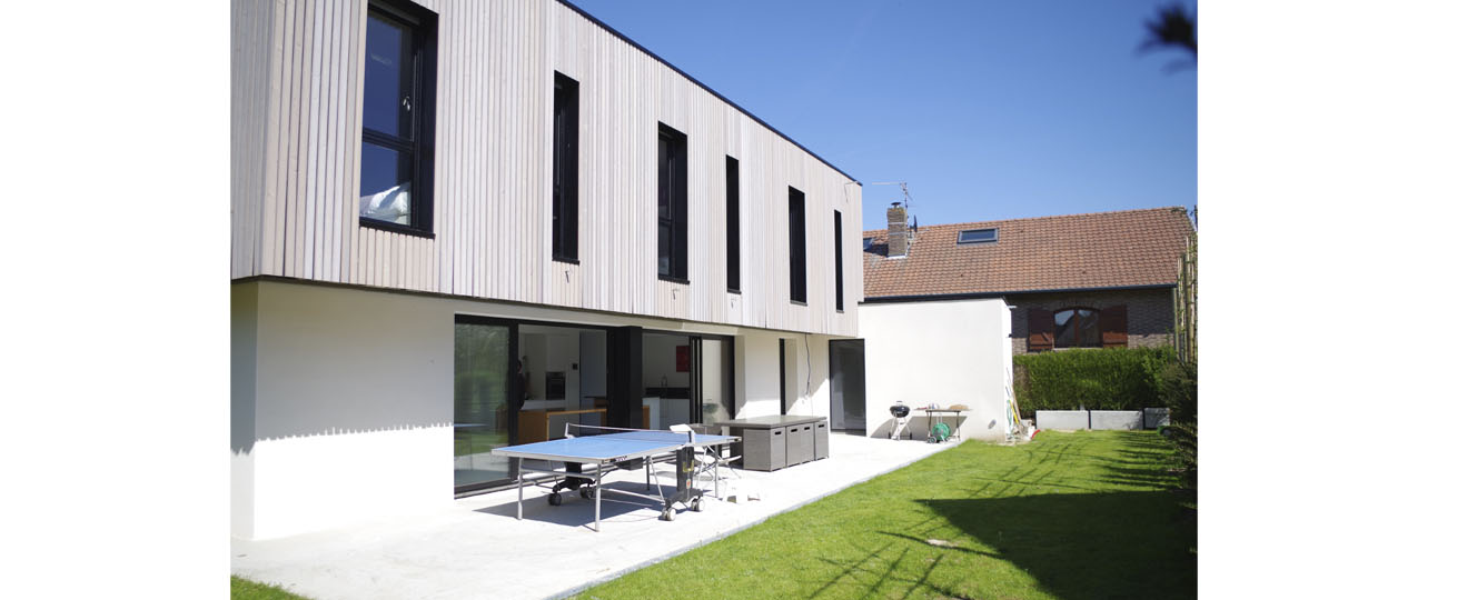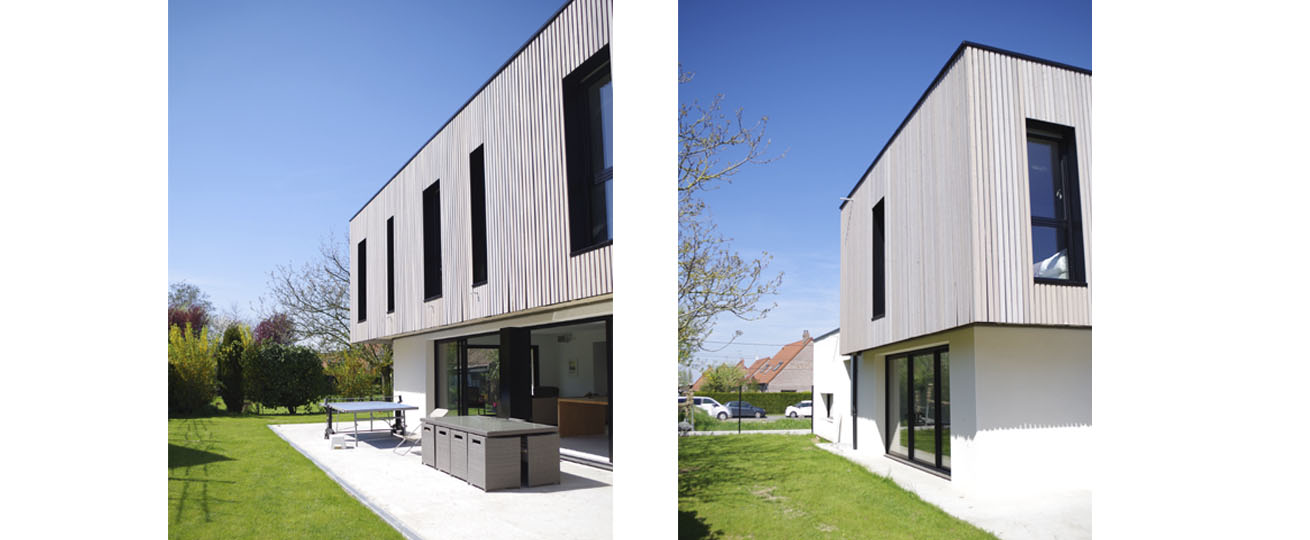 Maçonnerie et ossature bois ont été les réponses techniques à quelques difficultés ; brique, enduit et bardage habillent les différents volumes pour une harmonie et une parfaite intégration à l’environnement.