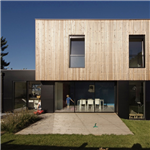 - Structure bois, bardage mélèze ajouré et panneaux bakélisé, menuiseries extérieures aluminium, chauffage gaz