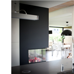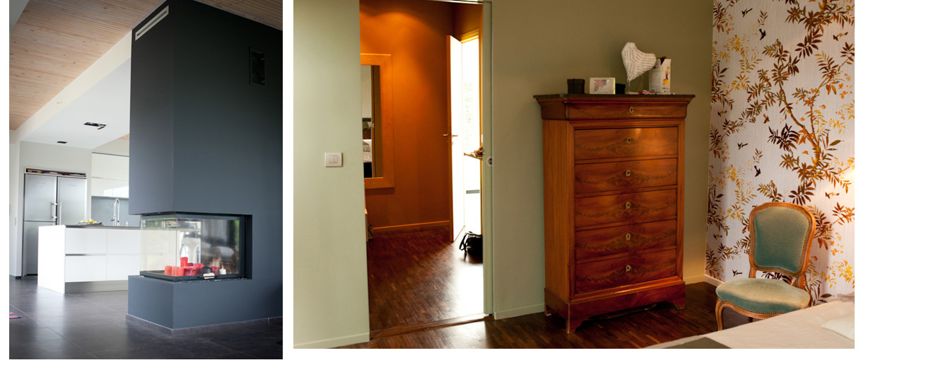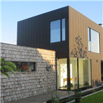 - Structure bois, isolation laine de bois, bardage zinc, chêne et panneaux bakélisé, menuiseries extérieures aluminium, chauffage gaz