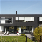 Le projet de maison individuelle s’implante sur un terrain situé dans une zone d’activité mélangeant programme de bureaux, logements sociaux et logements individuels, favorisant ainsi la mixité. La difficulté du programme consistait à concilier l’apport généreux de lumière, l’ouverture maximale sur les espaces verts extérieurs tout en préservant l’intimité des occupants vis-à-vis des bâtiments de bureaux avoisinants ou des programmes de logement sociaux.