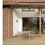 Le bois a également été utilisé en bardage ; brut de sciage il habille la chaufferie et le cellier, sa texture brute est une réponse à la brique laissée nue dans le car port.
