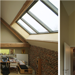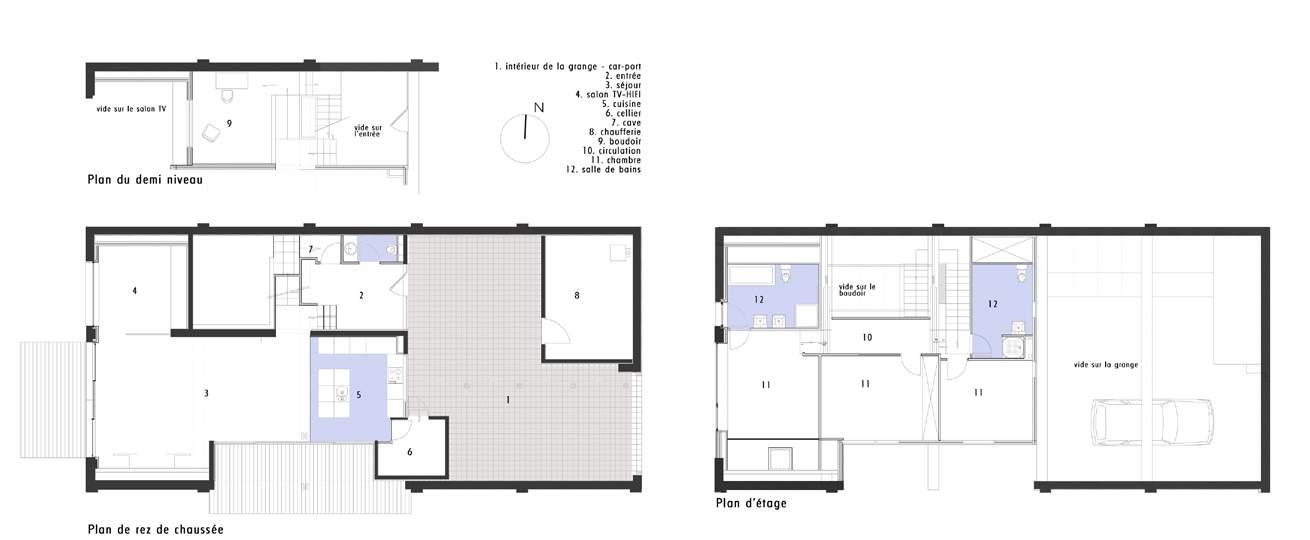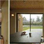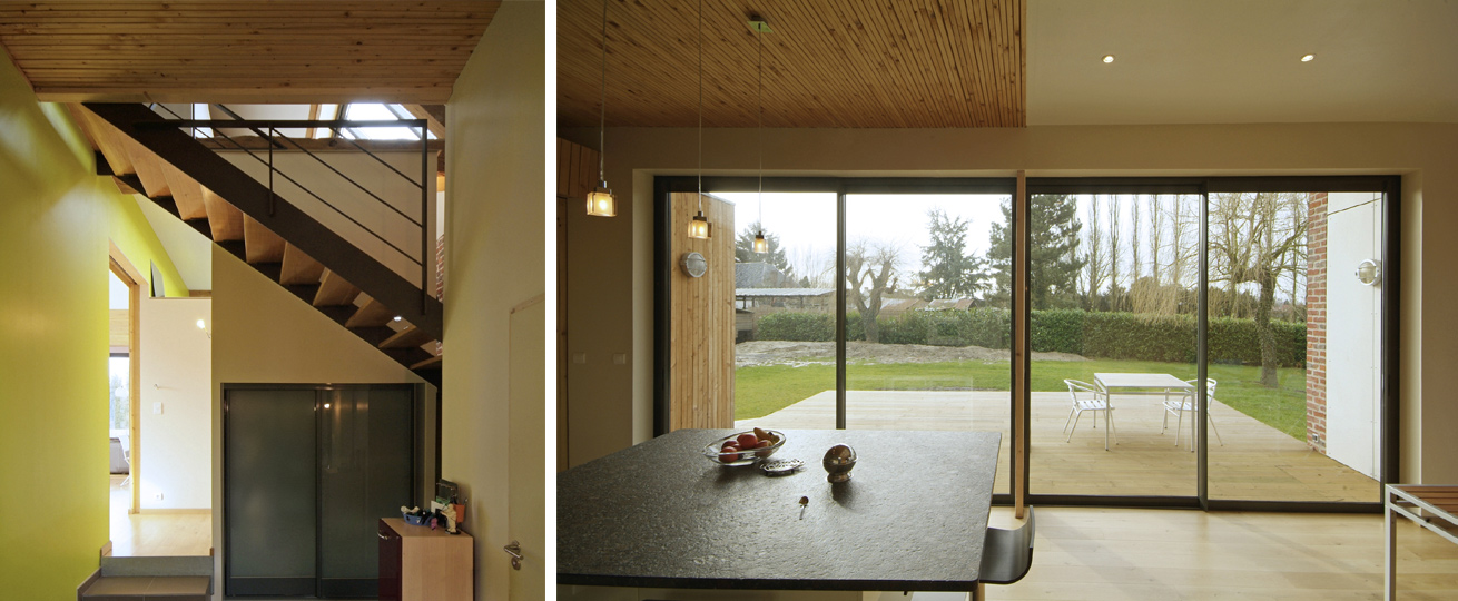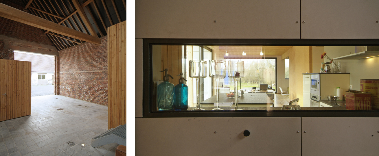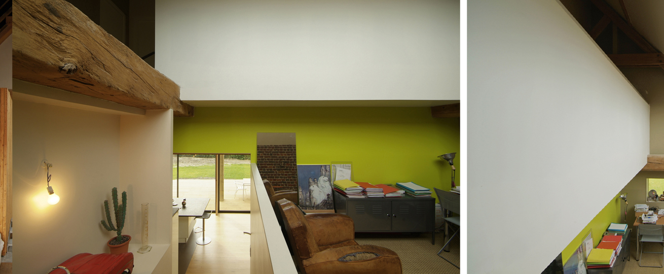 Pour atteindre cet équilibre entre maison et grange, plutôt que d’être disparates et de polluer le volume aveugle de la grange, les ouvertures ont été plus importantes mais ponctuelles.